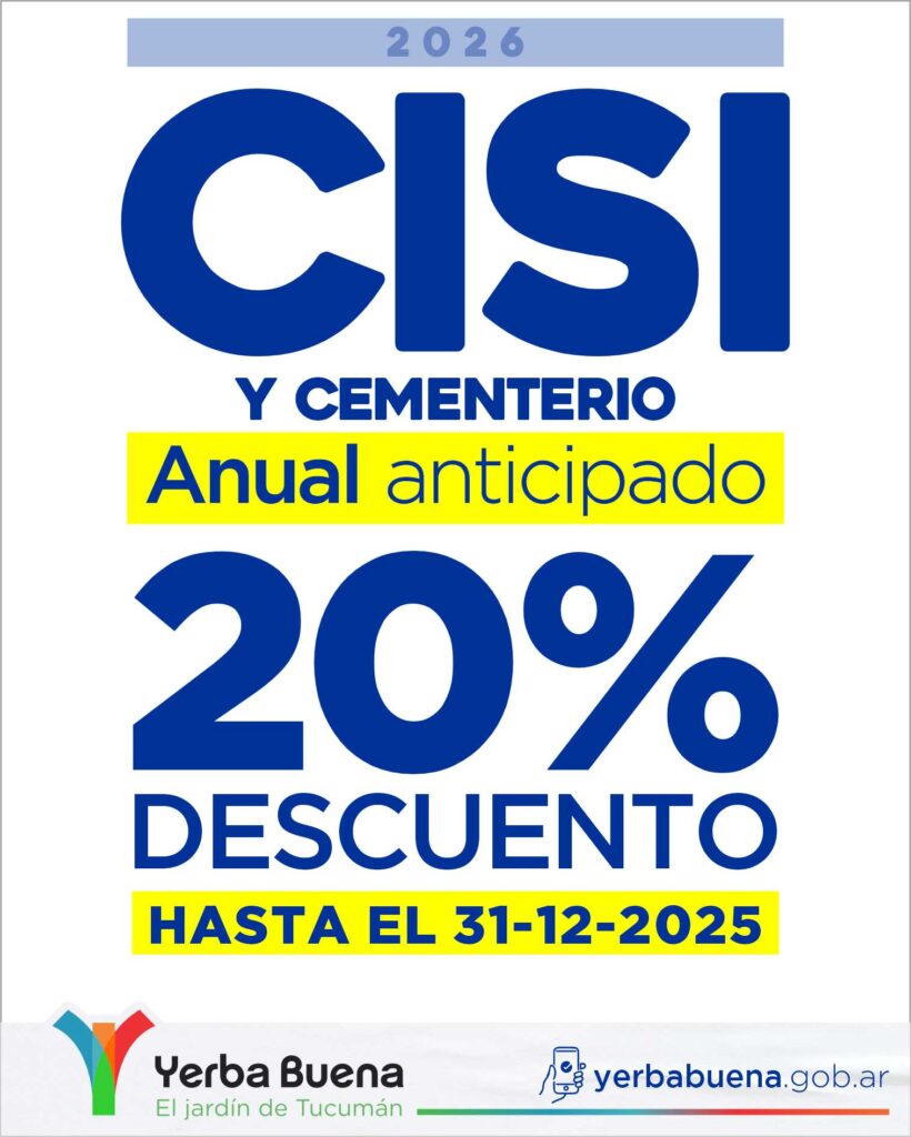 Informamos a los vecinos que ya se encuentra disponible el beneficio de 20% de descuento para quienes deseen realizar el pago anual anticipado del CISI y Cementerio 2026.