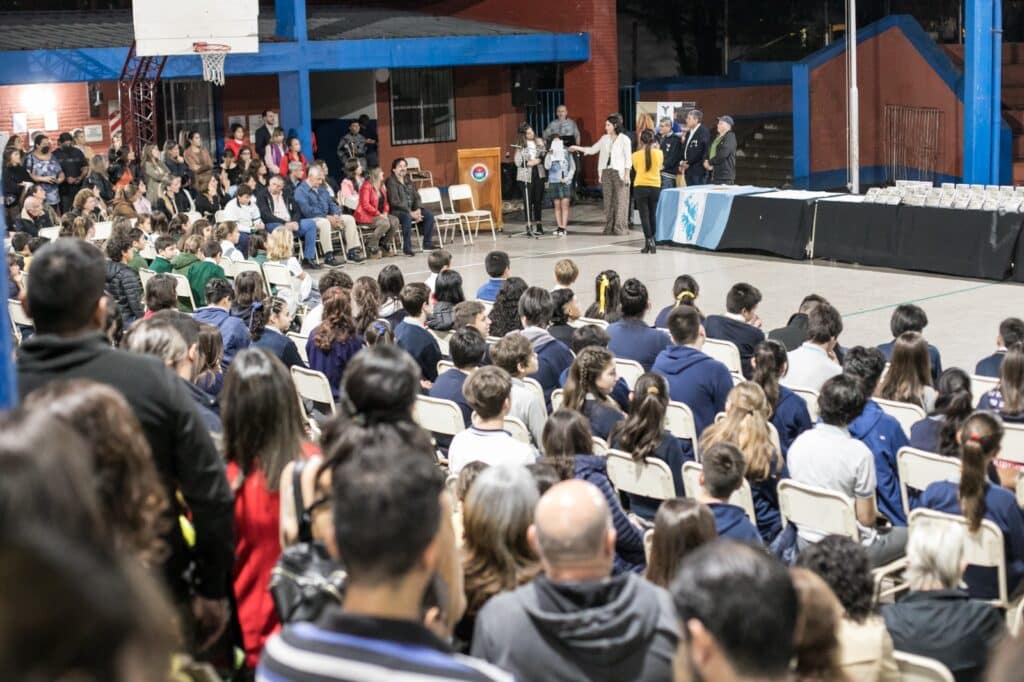 En la jornada del martes, en las instalaciones de la escuela Petrona de Adami, se realizó la entrega de libros “Gente de Acá 4” y de diplomas. Este acto contó con la presencia de la Directora de Educación, Victoria Desjardins, funcionarios municipales, ex combatientes de Malvinas, directivos, docentes, alumnos y padres.