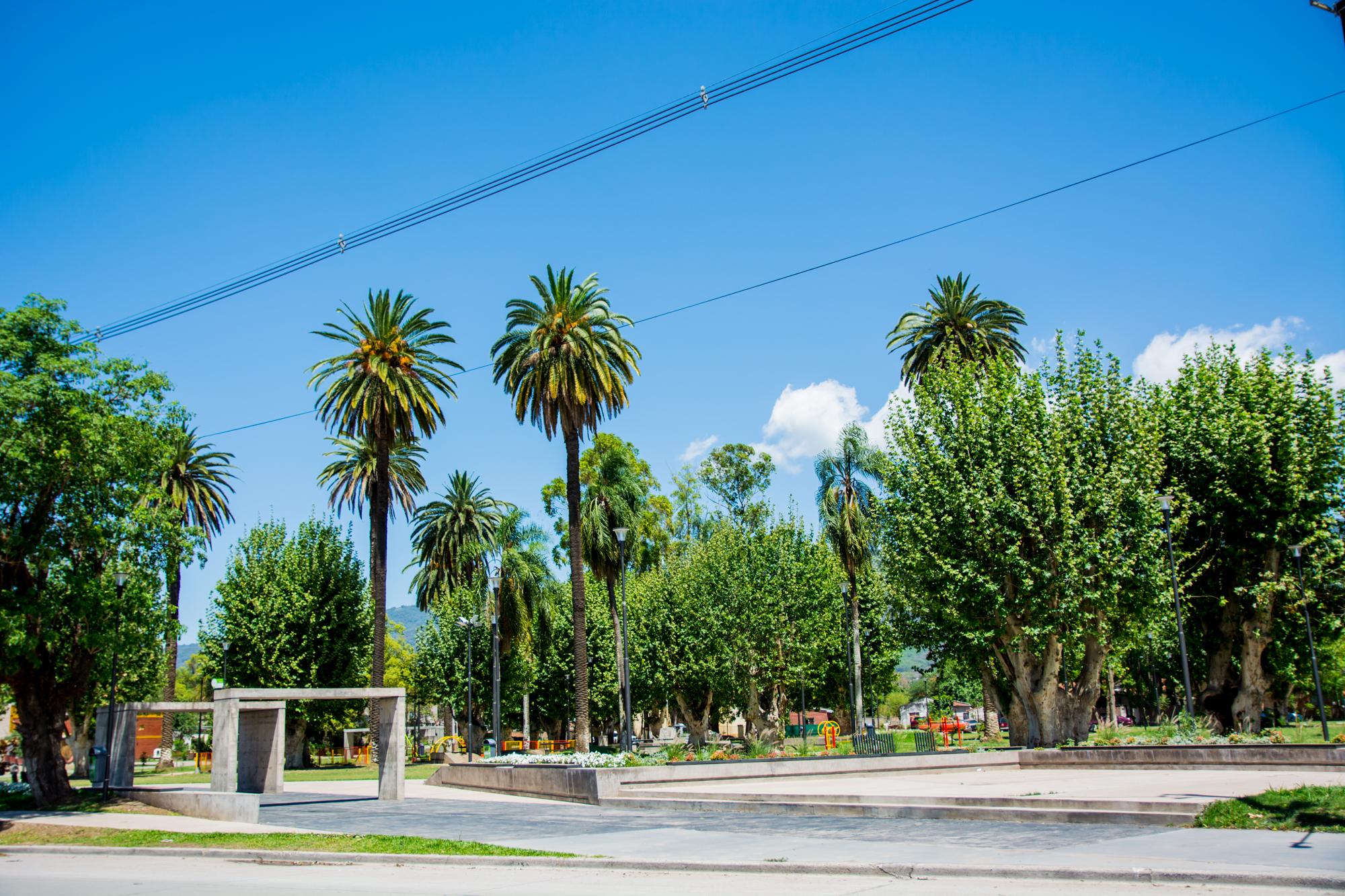 Hoy la plaza ofrece infraestructura moderna, juegos infantiles para los más chicos, sectores de esparcimiento y áreas preparadas para eventos al aire libre. Cada rincón invita a quedarse un rato más. Hay propuestas deportivas y recreativas gratuitas: los martes y jueves de 19:15 a 20:30 hs clases de zumba y entrenamiento funcional; los lunes, miércoles y viernes se juega al tejo de 16 a 18:30 hs. Durante los fines de semana abrimos el espacio a ferias, donde emprendedores locales muestran y venden sus productos. Además incorporamos conectividad para acompañar estos encuentros. La plaza cuenta con wifi libre y quienes la visitan pueden utilizar esta herramienta.